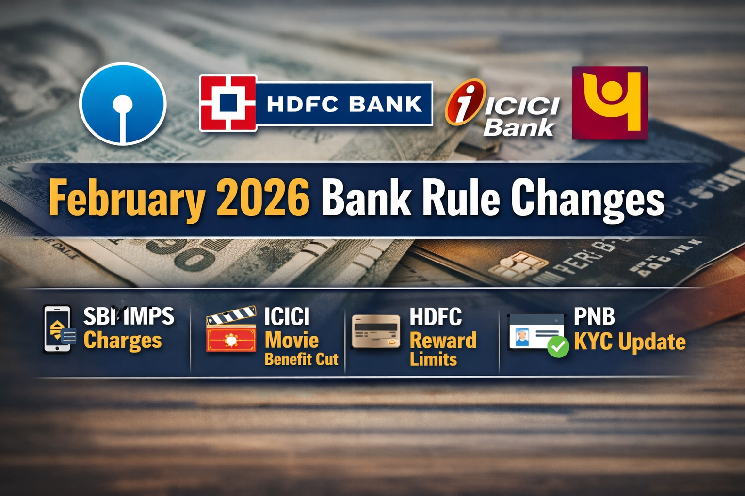 If you use SBI, ICICI Bank, HDFC Bank, or Punjab National Bank for daily banking, then February 2026 deserves your attention. Because several important banking and credit card rules are changing, your everyday transactions, rewards, and even account access could be affected. Therefore, staying informed now can help you avoid surprise charges and last-minute hassles later.